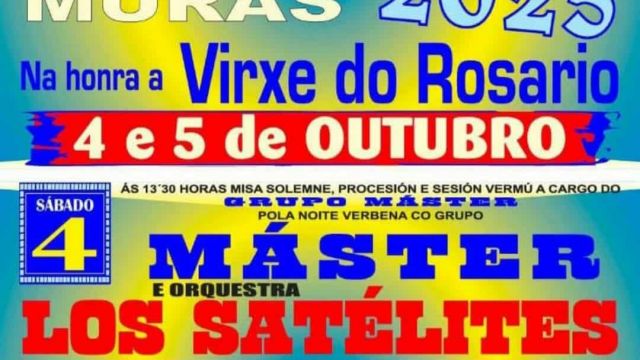 La parroquia de A Balsa (Muras) celebrará sus fiestas en honor a la Virxe do Rosario los días 4 y 5 de octubre de 2025, con actos religiosos y verbenas bajo carpa.Sábado, 4 de octubre
