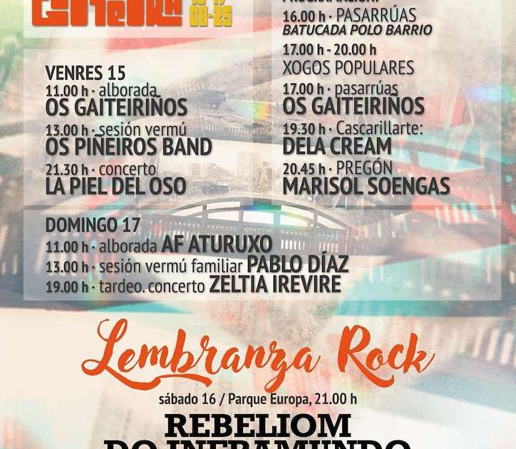 El Barrio da Gaiteira celebra sus fiestas con tres jornadas llenas de música, pasacalles, actividades familiares, conciertos y el festival Lembranza Rock. El programa incluye actuaciones de grupos locales y reconocidos artistas, así como actividades para todas las edades.