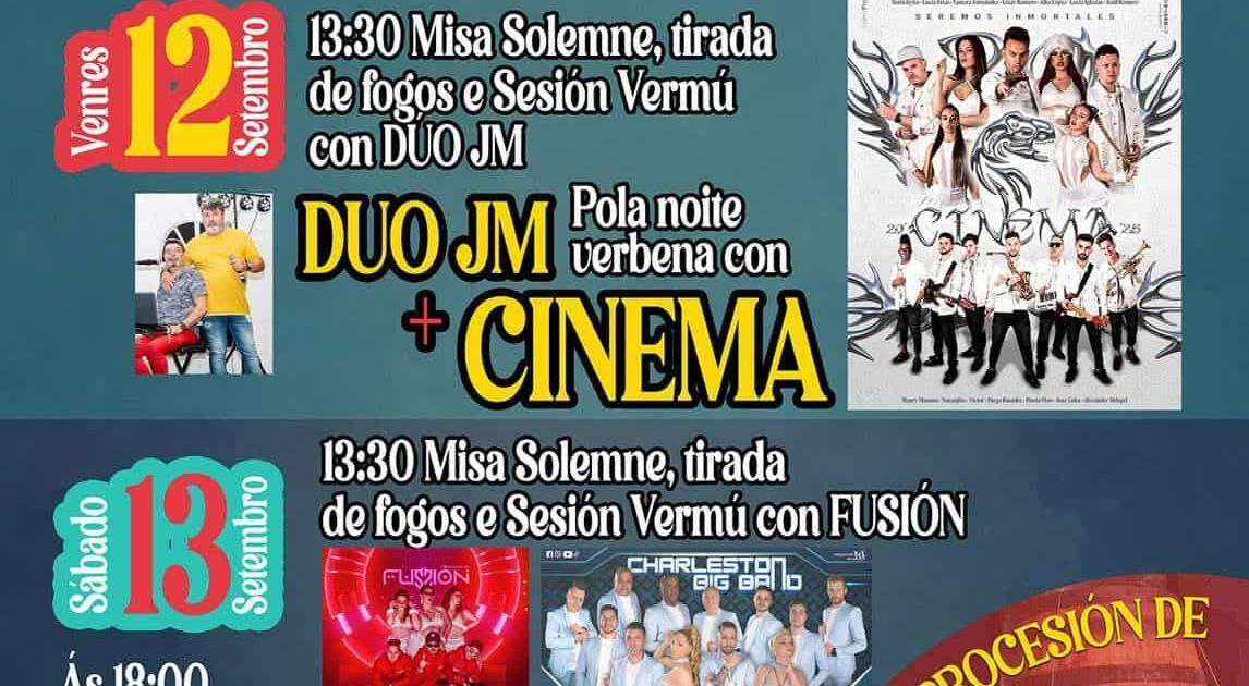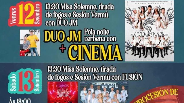 - 13:30 h: Misa solemne, tirada de fuegos y sesión vermú con Dúo JM