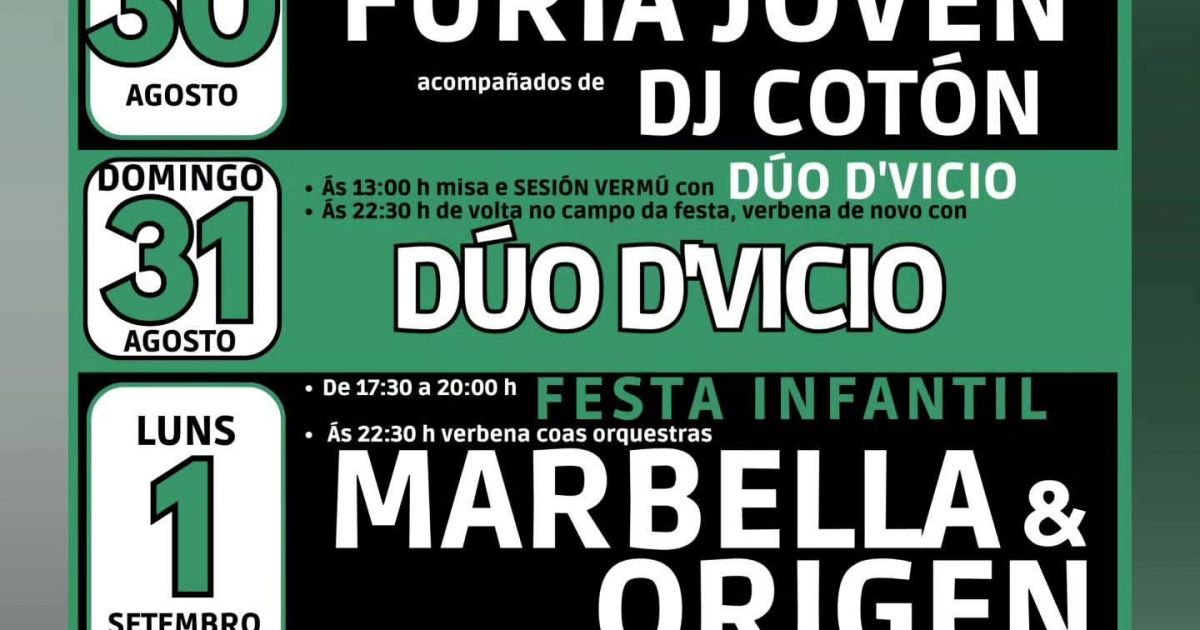 - 22:30 h: Verbena de nuevo con Dúo D'Vicio