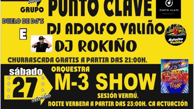- 23:00 h: Verbena con la actuación de la Orquesta M-3 Show.
