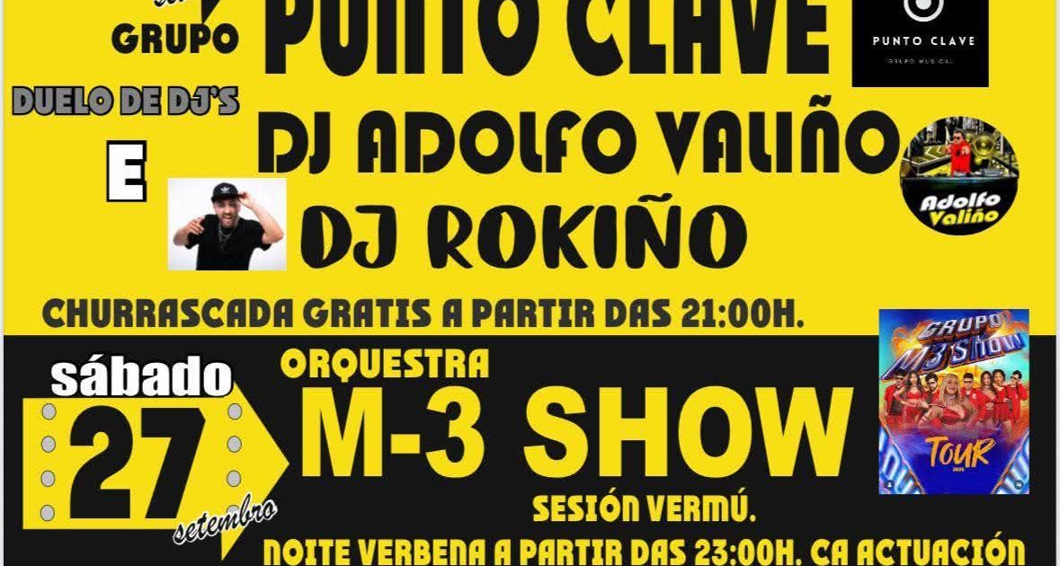 - 23:00 h: Verbena con la actuación de la Orquesta M-3 Show.