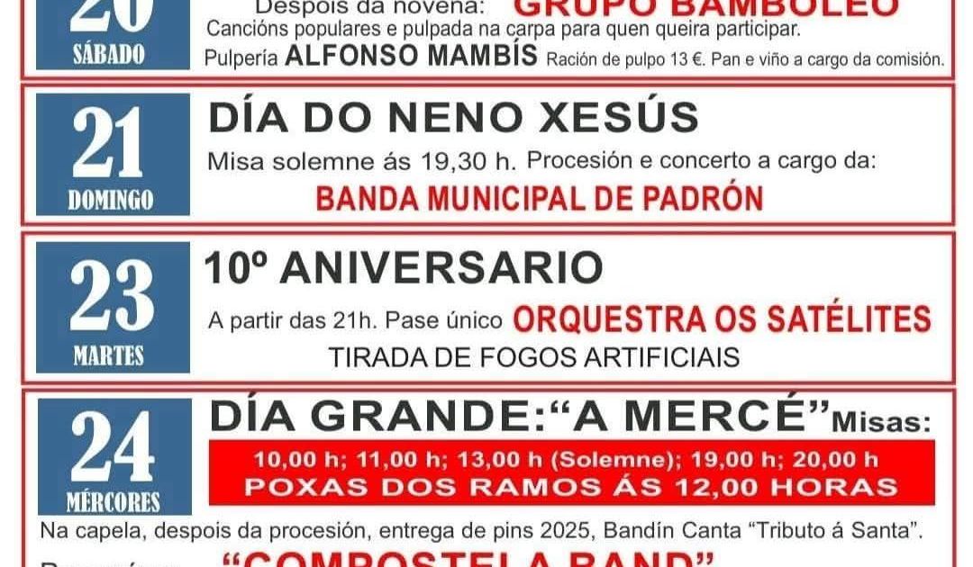 Fiestas de Nuestra Señora de la Merced de Bandín 2025 en Bandín - Padrón