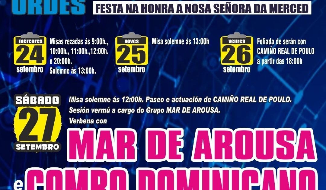 24 y el 28 de septiembre de 2025, con actos religiosos, foliada, sesións vermú y grandes verbenas.
