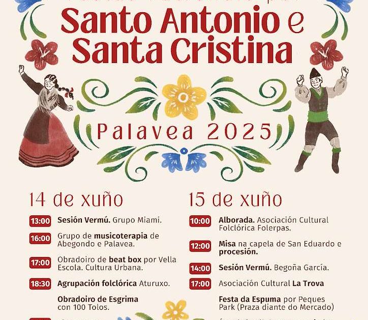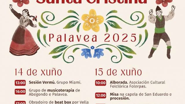 El barrio de Palavea, en A Coruña, celebra sus fiestas anuales dedicados a Santa Cristina y San Antonio. Este año serán el sábado 14 y el domingo 15 de junio. Esta es la programación completa: