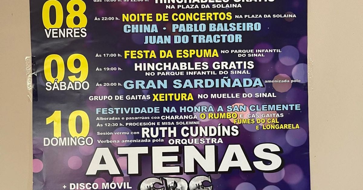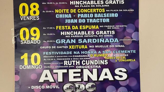 El núcleo de O Pindo y su entorno celebra sus tradicionales Festas de San Clemente con hinchables, conciertos, sardiñada, charangas, misas y grandes verbenas.