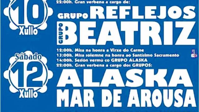 - 22:00h: Gran verbena con los grupos Alaska y Mar de Arousa