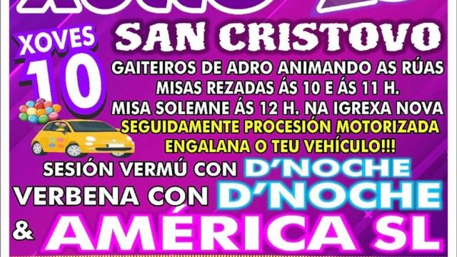 Baio celebra sus tradicionales fiestas patronales en honor a San Cristovo y Santa Bárbara con misas solemnes, gaiteros por las calles, procesión motorizada, sesiones vermú y grandes verbenas con algunas de las orquestas más destacadas del momento.