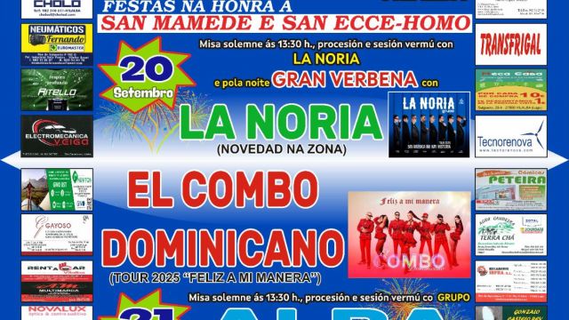 - Noche: Gran verbena con La Noria y El Combo Dominicano (Tour 2025 "Feliz a mi manera")