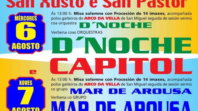 Las Festas na honra a San Xusto e San Pastor en Barreiros incluyen ceremonias religiosas tradicionales con una solemne procesión de imágenes acompañada por gaiteros locales, así como sesiones vermú y grandes verbenas musicales.