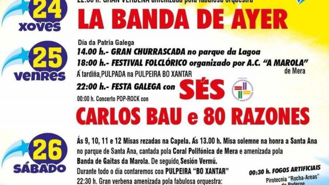 Fiestas de Santa Ana de Mera 2025 en Oleiros: Programa, cartel y agenda completa