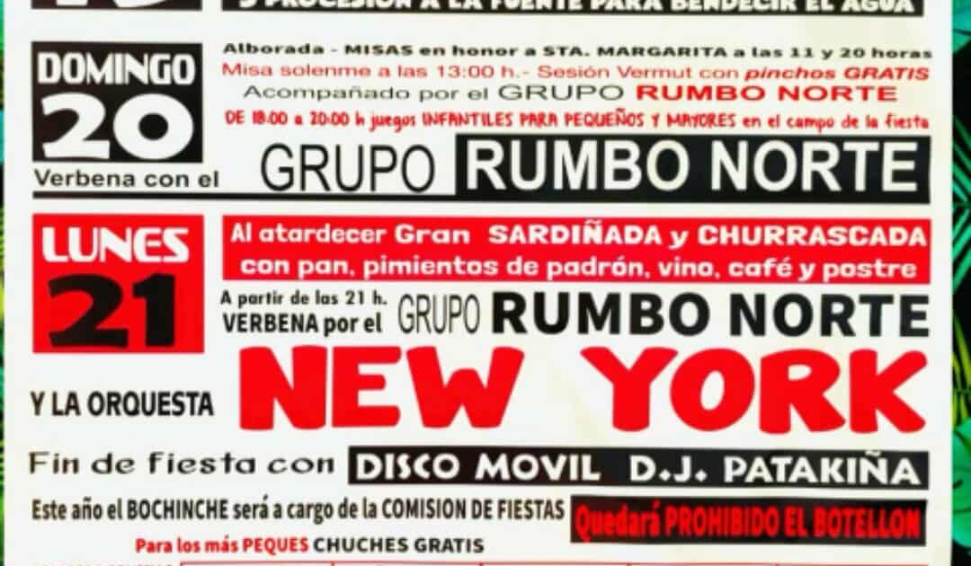 - 21:00 h · Verbena a cargo del Grupo Rumbo Norte y la orquesta New York