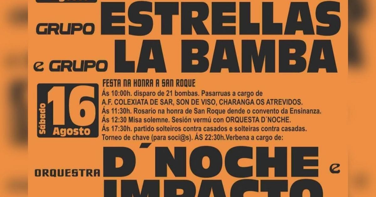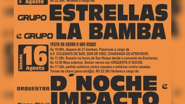 Las Festas de Sar 2025 reunirán actividades religiosas, pasacalles, sesiones vermú, verbenas, música en directo y juegos tradicionales.