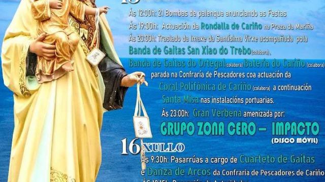 Las Festas na Honra A Nosa Señora do Carme en Cariño incluyen actos religiosos, pasacalles, música en directo y procesión marítima.