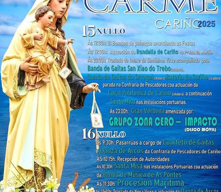 Fiestas del Carmen de Cariño 2025: Programa, cartel y agenda completa en Concello de Cariño