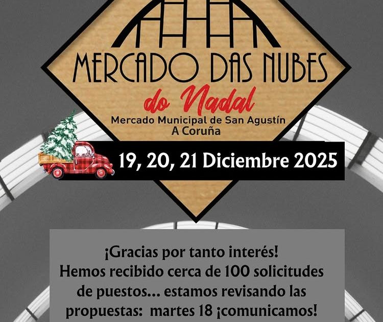 - En diciembre, los días 19, 20 y 21, vuelve el Mercado das Nubes. Una vez más, será en el Mercado de San Agustín, A Coruña.