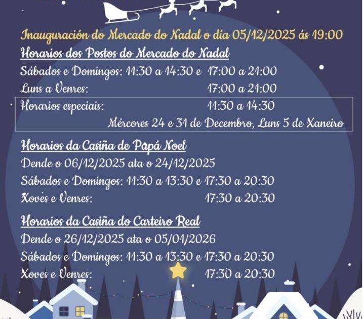 El Mercado de Nadal de Arteixo vuelve a instalarse en el Paseo Fluvial da Igrexa con puestos donde vecinos y visitantes podrán adquirir artículos navideños y regalos. La inauguración será el viernes 5 de diciembre a las 19:00 horas.