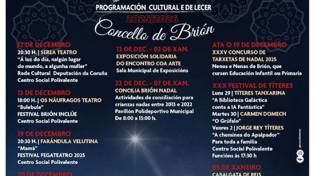 - Concilia Brión Nadal: actividad de conciliación para familias con niños (Pabellón Polideportivo Municipal, de 8:00 a 15:00 h)