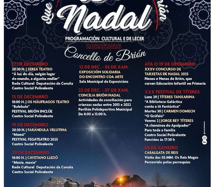 - Obra teatral “Tolosada” a cargo de Os Náufragos Teatro, dentro del Festival Brión Inclúe (18:00 h, Centro Social Polivalente)