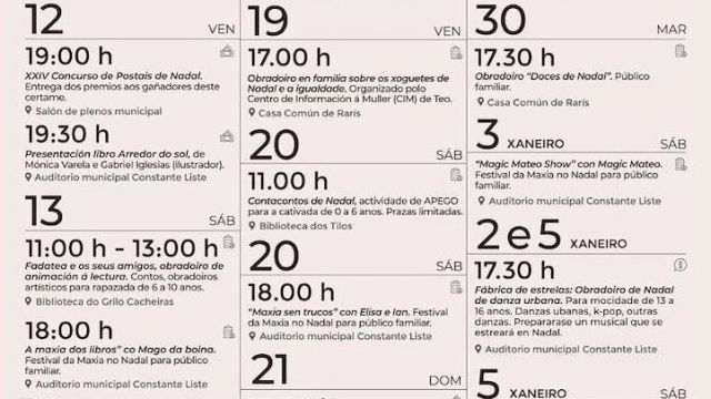 - “Maxia sen trucos” con Braga e Jan – Festival da Maxia de Nadal (18:00 h, Auditorio Municipal Constante Liste)