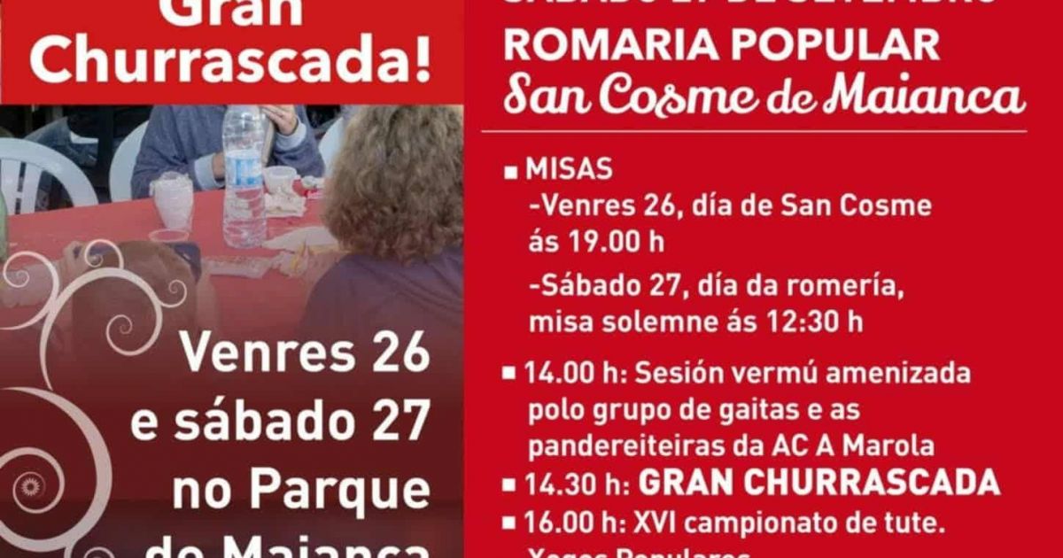 La XXII Romería de San Cosme de Maianca reúne a vecinos y visitantes con misas, música, juegos populares, churrascada y verbenas en un ambiente festivo y familiar.