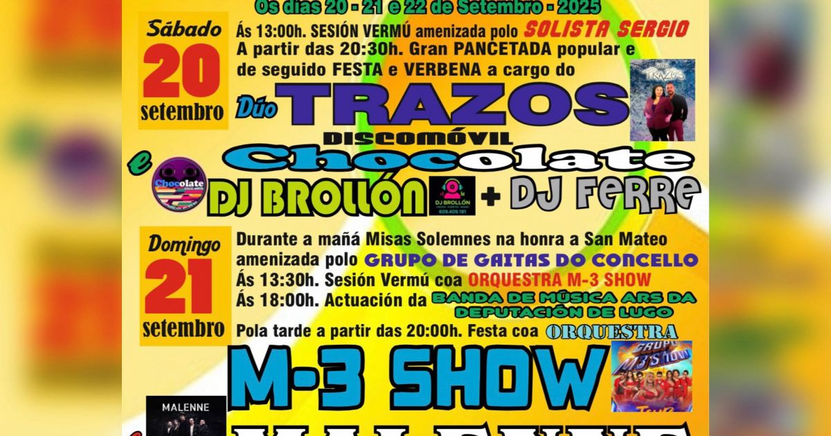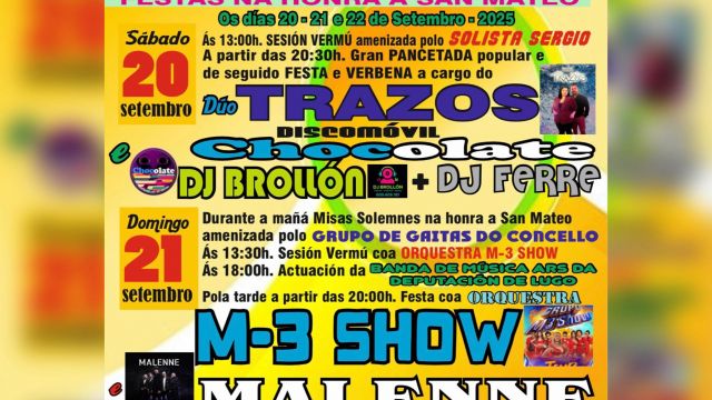 - Mañana → Misas solemnes en honor a San Mateo, amenizadas por el Grupo de Gaitas do Concello.