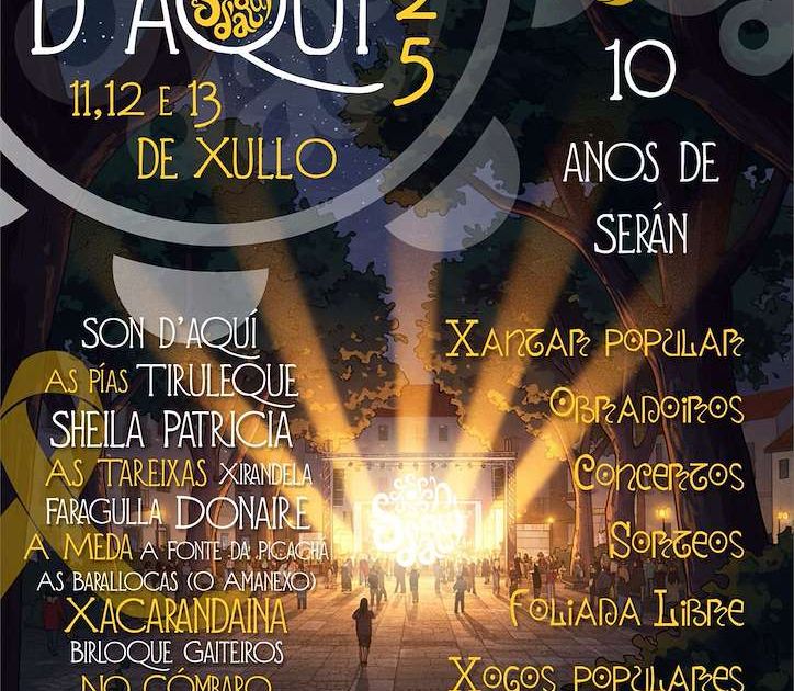 La asociación Son D'Aquí de Monte Alto celebra el evento Serán D'Aquí en la praza Campo da Leña (Praza de España) de A Coruña los días 10, 11 y 12 de julio. Esta es la agenda de actividades: