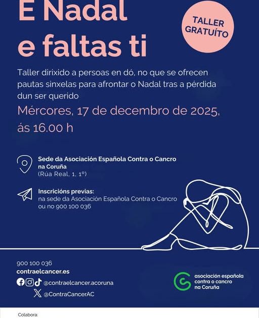 Taller gratuito 'É Nadal e faltas ti' - Asociación Española Contra o Cancro en A Coruña - 17/12/2025