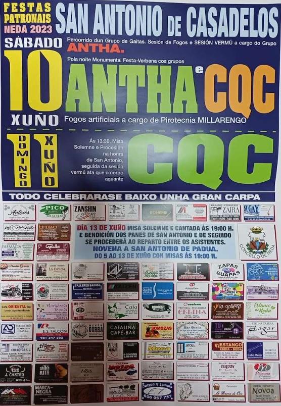 Los vecinos de Casadelos en Neda (A Coruña), celebrarán este fin de semana las fiestas patronales en honor a San Antonio, una cita que comenzará el sábado y se prolongará hasta el martes día 13 en la que no faltará la música y las bombas de palenque.