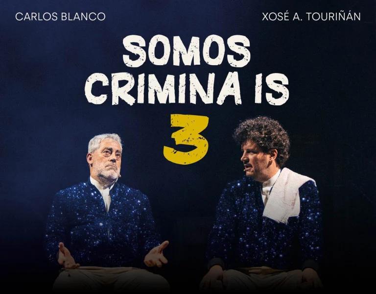 Carlos Blanco y Xosé A. Touriñán cierran este fin de semana en A Coruña la segunda gira de Somos Criminais 3, y lo hacen con las entradas agotadas. Los dos cómicos ofrecerán una dosis de humor en la última parada por los teatros gallegos con sesiones el viernes 9 de junio (20:30 y 23:00 horas) y el sábado 10 de junio (18:00 e 20:30 horas). En su primera gira de presentación, que tuvo lugar entre finales de 2021 y principios de 2022, más de 30.000 espectadores llenaron los teatros y auditorios gallegos. En esta segunda ya han conseguido llevar a más de 13.000 personas a su espectáculo.