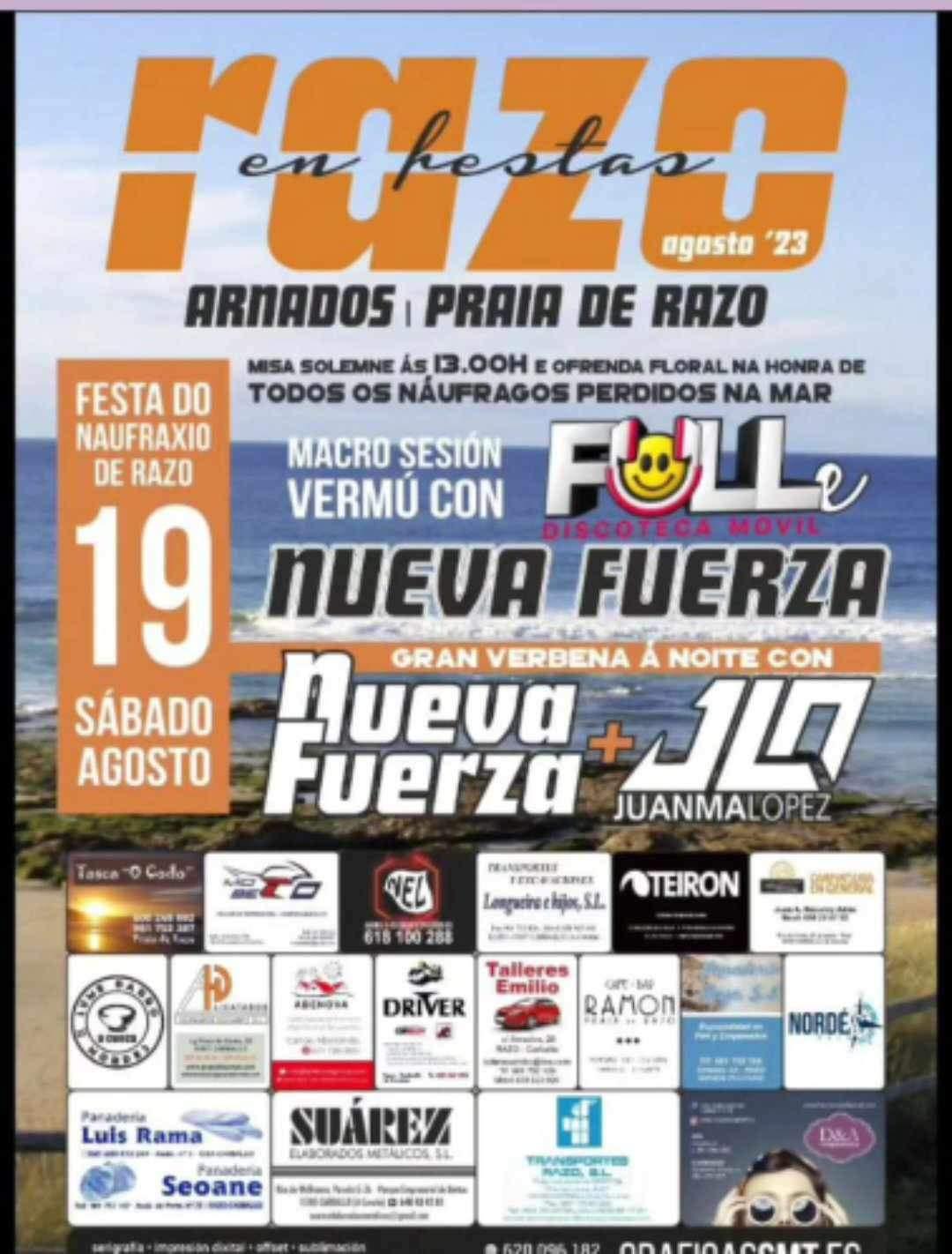 El núcleo de Arnados y la playa de Razo serán los principales escenarios de esta fiesta, que arrancará el sábado 19 de agosto al hilo de las 13:00 horas con una misa solemne y una ofrenda floral.