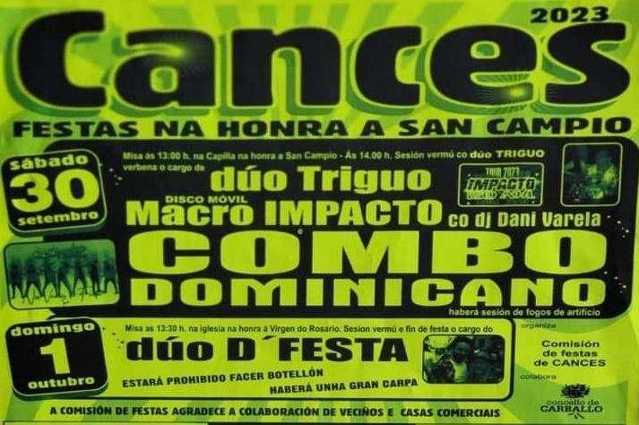 La parroquia de Cances, en Carballo (A Coruña), celebrará sus fiestas en honor a San Campio este fin de semana. El plato fuerte de las celebraciones será la actuación del Combo Dominicano, una de las orquestas más reconocidas en Galicia.