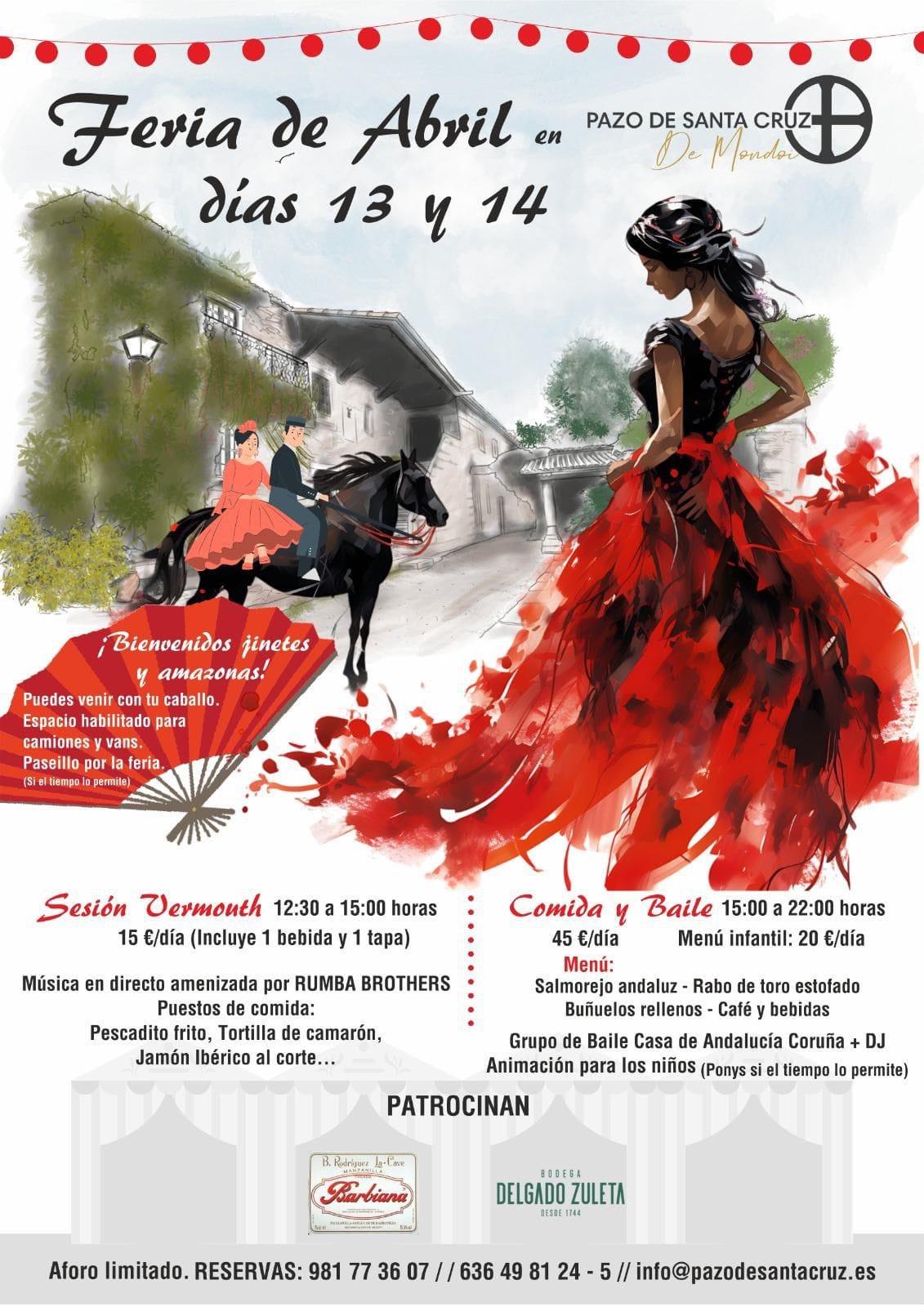 Los volantes y los lunares serán los grandes protagonistas de la semana con motivo de la Feria de Abril, que tendrá lugar del domingo 14 al sábado 20 de abril en Sevilla. Este año esta popular y tradicional feria también se celebrará en A Coruña y su ubicación es donde menos te lo esperas: en el Pazo de Santa Cruz de Mondoi.
