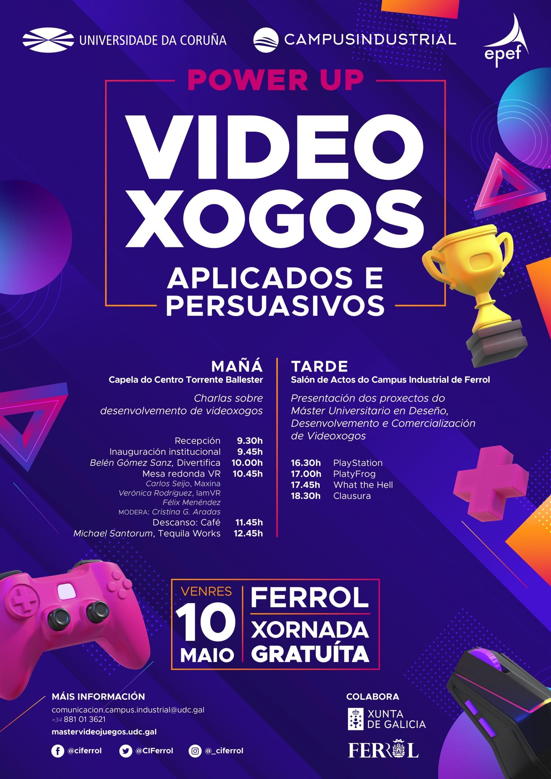 La capilla del centro cultural Torrente Ballester acogerá el próximo 10 de mayo, a partir de las 9:30 horas, la Jornada Power Up Videoxogos Aplicados e Persuasivos que organiza el Campus Industrial de Ferrol, de la Universidad de A Coruña, junto con la Escola Politécnica de Ingeniería de Ferrol (EPEF) a través del máster en Diseño, Desarrollo y Comercialización de Videojuegos. Colaboran también la Xunta de Galicia y el Concello de Ferrol.