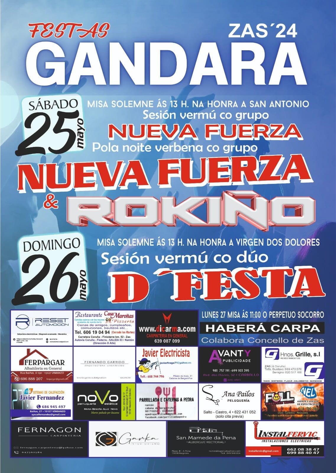 La agenda de Gándara, en Zas (A Coruña), trae interesantes novedades este mes de mayo: la parroquia ubicada en la Costa da Morte recuperará sus fiestas después de 10 años y lo hará con el grupo Nueva Fuerza, Rokiño y el dúo D’Festa.