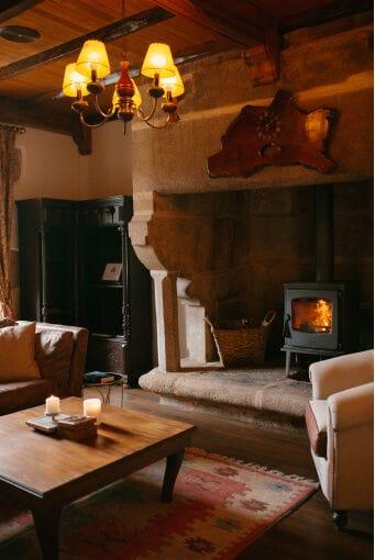 El Pazo do Souto cuenta con un total de trece estancias: desde seis habitaciones dobles hasta una luxury suite, que en sus día fueron los aposentos del Marqués de Montenegro. Esta habitación de 50 metros cuadrados (m2) cuenta con una cama king size, jacuzzi con tratamiento de cromoterapia y una magnífica chimenea, además de tener unas excelentes vistas a los jardines y la montaña.