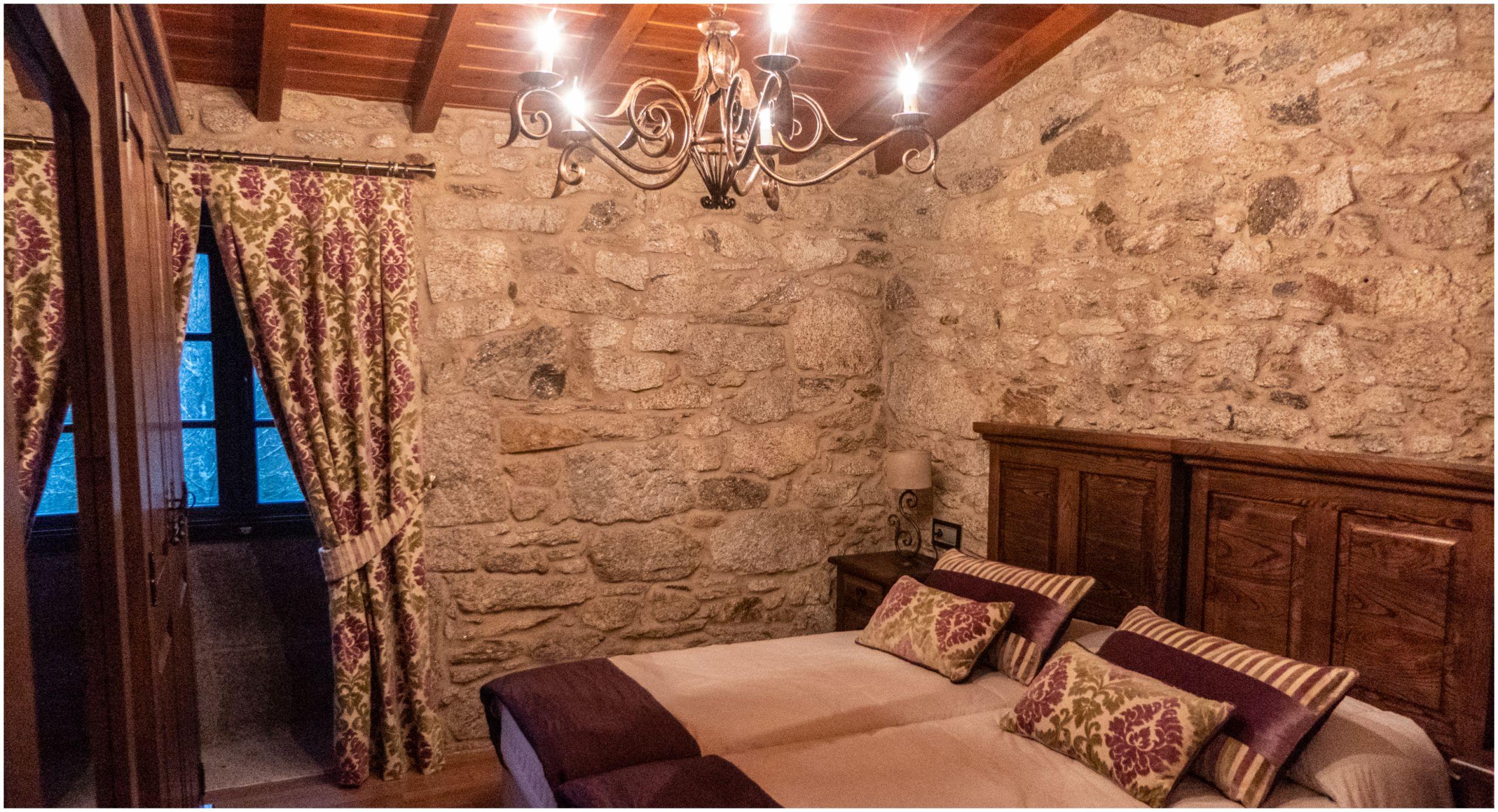 "Mi marido y yo iniciamos este proyecto con esfuerzo, amor y trabajo, pero sobre todo con mucho mimo. Todo está hecho a medida y primero se hicieron dos sillas que son como dos tronos aderezados con dos leones como posabrazos, todo tallado en madera maciza", afirma Meis. En las paredes de la casa rural se pueden encontrar pinturas de aire gallego en las que se representan mesones antiguos "con porcelana típicas de las abuelas gallegas", detalla la responsable del alojamiento. Todas las habitaciones son diferentes y en la planta baja cuentan con una habitación adaptada para personas con dificultades de movilidad.