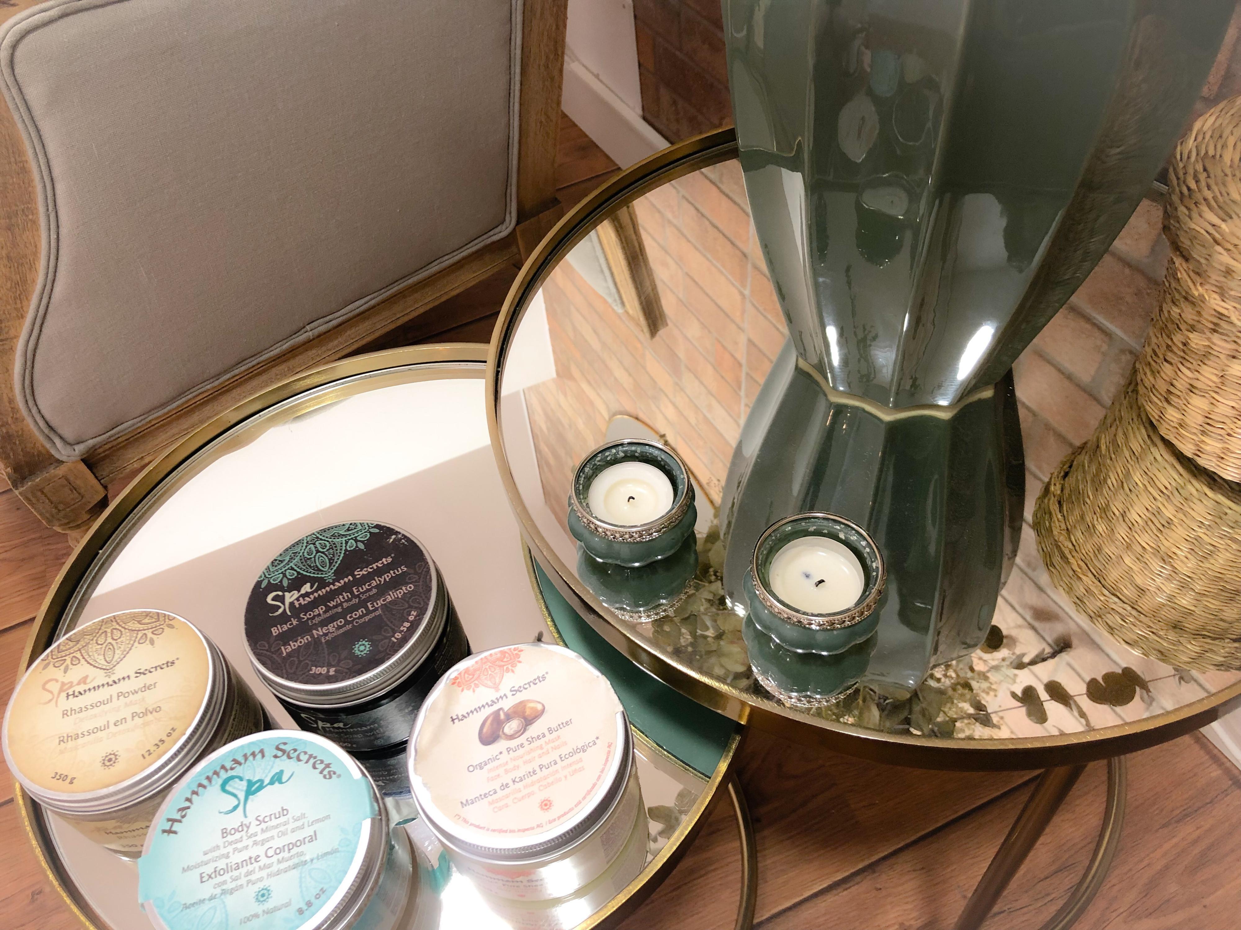 En primer lugar, se sumergen los pies en agua con jabón de argán y flores secas para después lavarlos con jabón negro de eucalipto que purifica, desintoxica y calma en profundidad. A continuación, se aplica un exfoliante con sales del mar muerto, aceite de argán y limón para eliminar las pieles muertas y se vuelve a exfoliar la piel, pero esta vez con un guante de kessa.