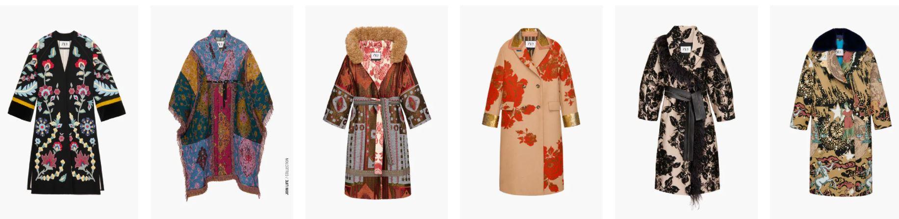 La más cara es un abrigo de capa confeccionado con tejido en mezcla de lana y manga larga con puños en jacquard resaltados con cinta de raso dorada, todo ello acompañado de pedrería con motivos florales y aplicaciones de terciopelo. Otra de las piezas en un poncho en patchwork con tres estampados jacquard con efecto acolchado, flecos y acabados de rayas.