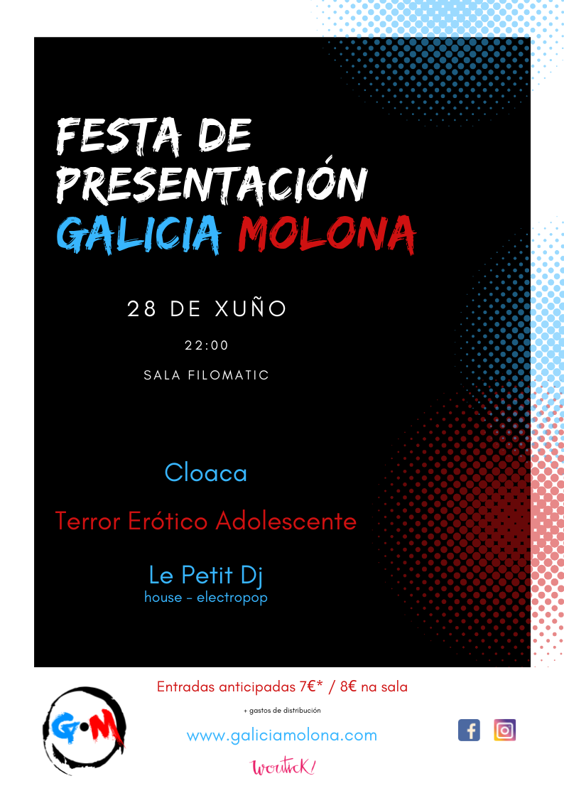 Este viernes, 28 de junio, se presenta en A Coruña la Asociación Cultural Musical Galicia Molona. Un colectivo que nace con el objetivo de promocionar la música alternativa gallega y que, como no podía ser de otra forma, se da a conocer con un evento musical en la Sala Filomatic.