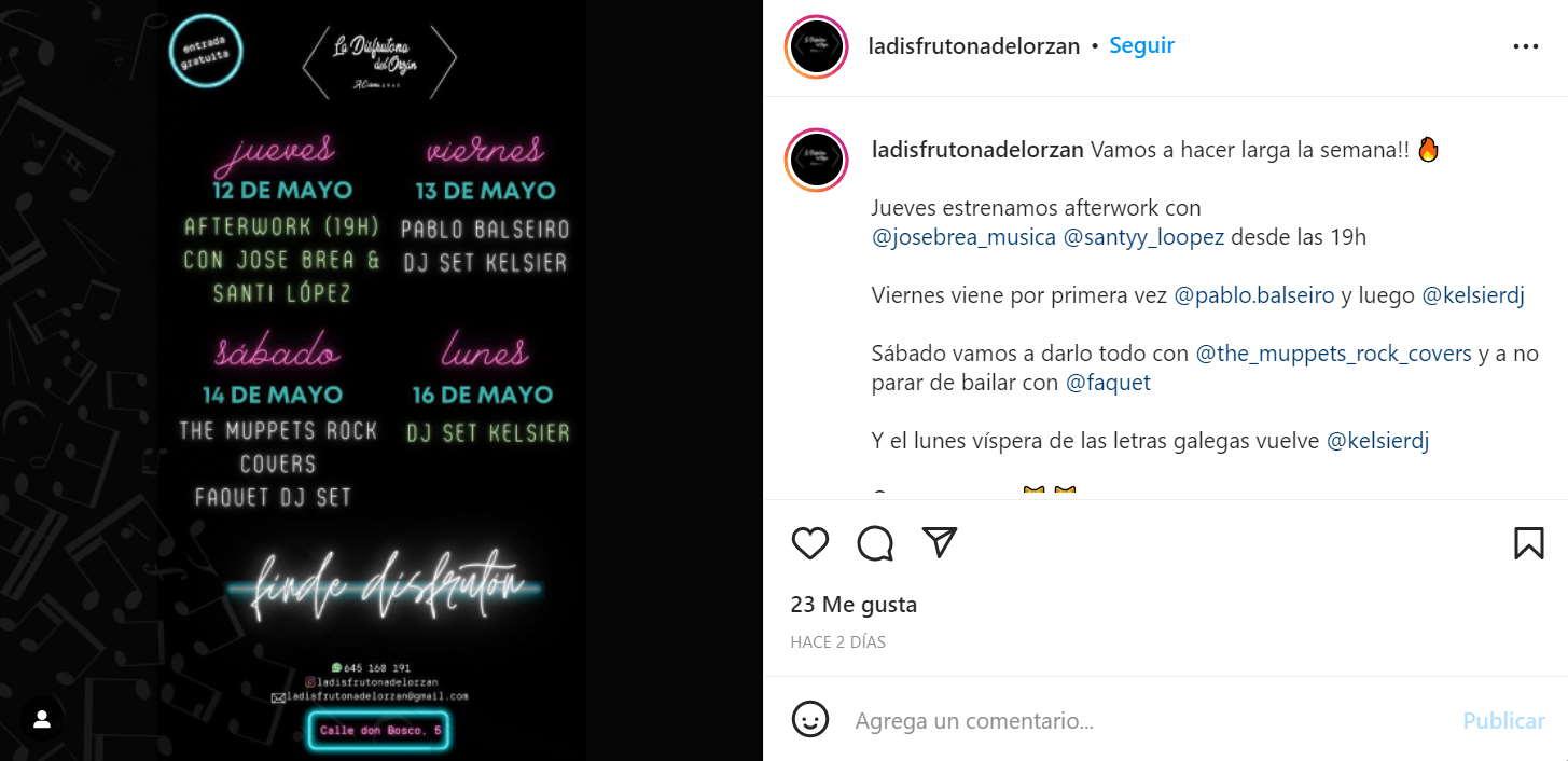 Los primeros pasos del nuevo local, que abrió el pasado 14 de abril, han sido muy buenos. "La gente se esta interesando mucho por el local, que estar, quiere venir para pasárselo bien y repetir"; cuenta Iago. Además, ya están ultimando una interesante agenda hasta bien pasado el verano. "Estamos cerrando programación para otoño. De mayo a junio está todo cerrado", explica.