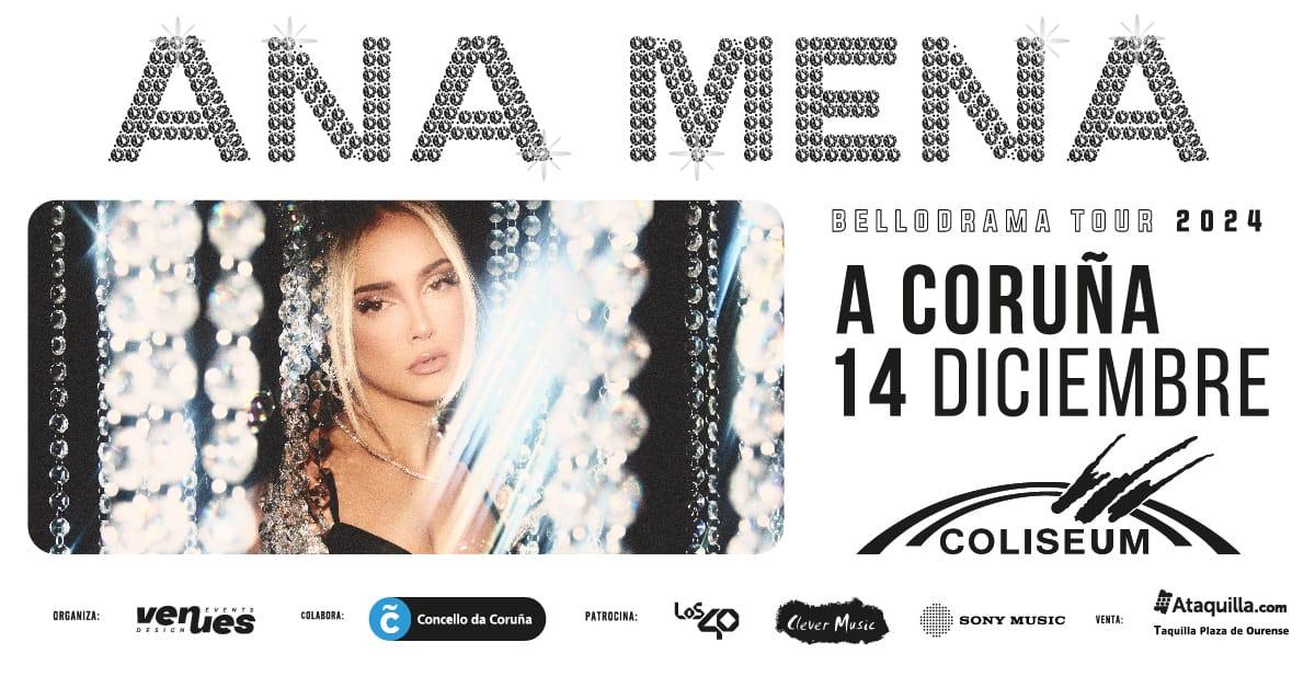Las entradas para el concierto de Ana Mena en el Coliseum de A Coruña que adelantamos en exclusiva la semana ya están a la venta y el concierto ha sido anunciado oficialmente. Será el sábado 14 de diciembre, a partir de las 22:00 horas y las entradas se podrán adquirir a partir de hoy a través de Ataquilla o en el punto de venta de la plaza de Ourense.