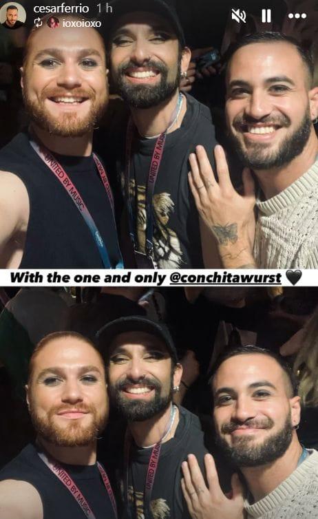 Además, el gallego junto a su compañero bailarín han compartido imágenes junto a Conchita Wurst, una figura muy querida en el mundo eurovisivo que se hizo con la victoria del festival en en 2014 con su tema ‘Rise Like a Phoenix’.