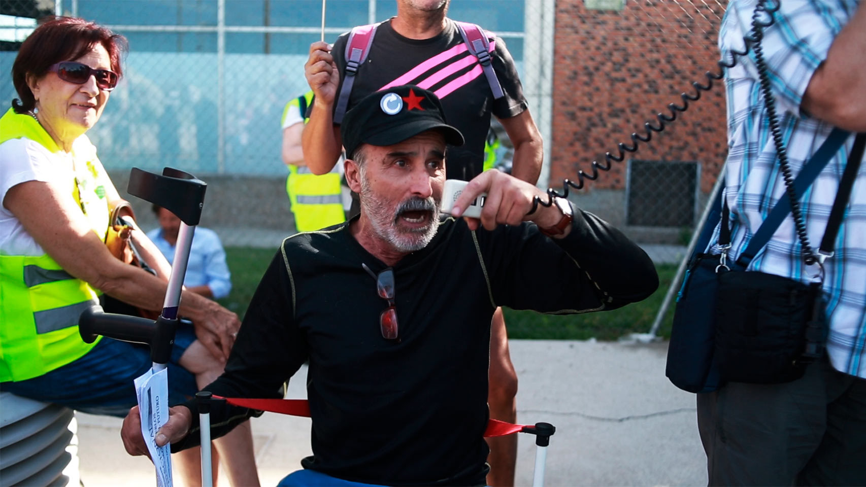 Carlos, el tornero jubilado que compone canciones contra Rajoy, durante la protesta./ Moeh Atitar