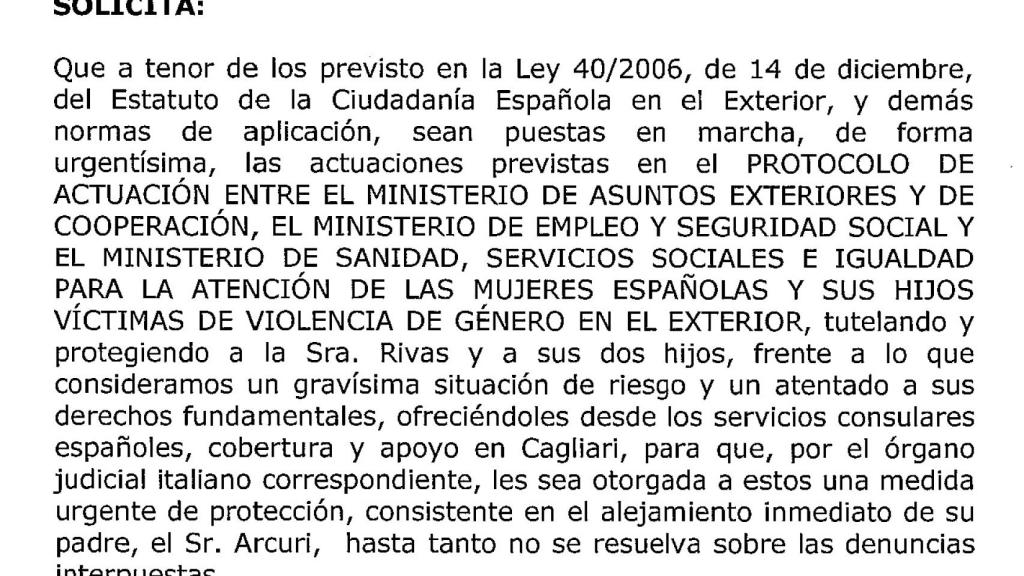 Además Juana ha presentado una carta a la Dirección General de Españoles en el Exterior y de Asuntos Consulares y Migratorios. División de Emergencia Consular y dirigida en última instancia a Carmen Calvo pidiéndola que cuide de sus hijos y les defienda del horror y el dolor que están sufriendo. “Al gobierno le pido por favor que se interese por dos niños españoles que están desamparados. Que cuide de dos menores que son españoles y que solo tienen a su madre que está luchando sola como puede por ellos. Al gobierno le pido por favor que se ponga en el lugar de una madre que solo quiere que sus hijos dejen de sufrir. Si en lugar de haberle dado un golpe en la espalda a mi hijo se lo hubiera dado en la cabeza hoy no estaríamos aquí y yo no se dónde estaría”, pide llorando Rivas.