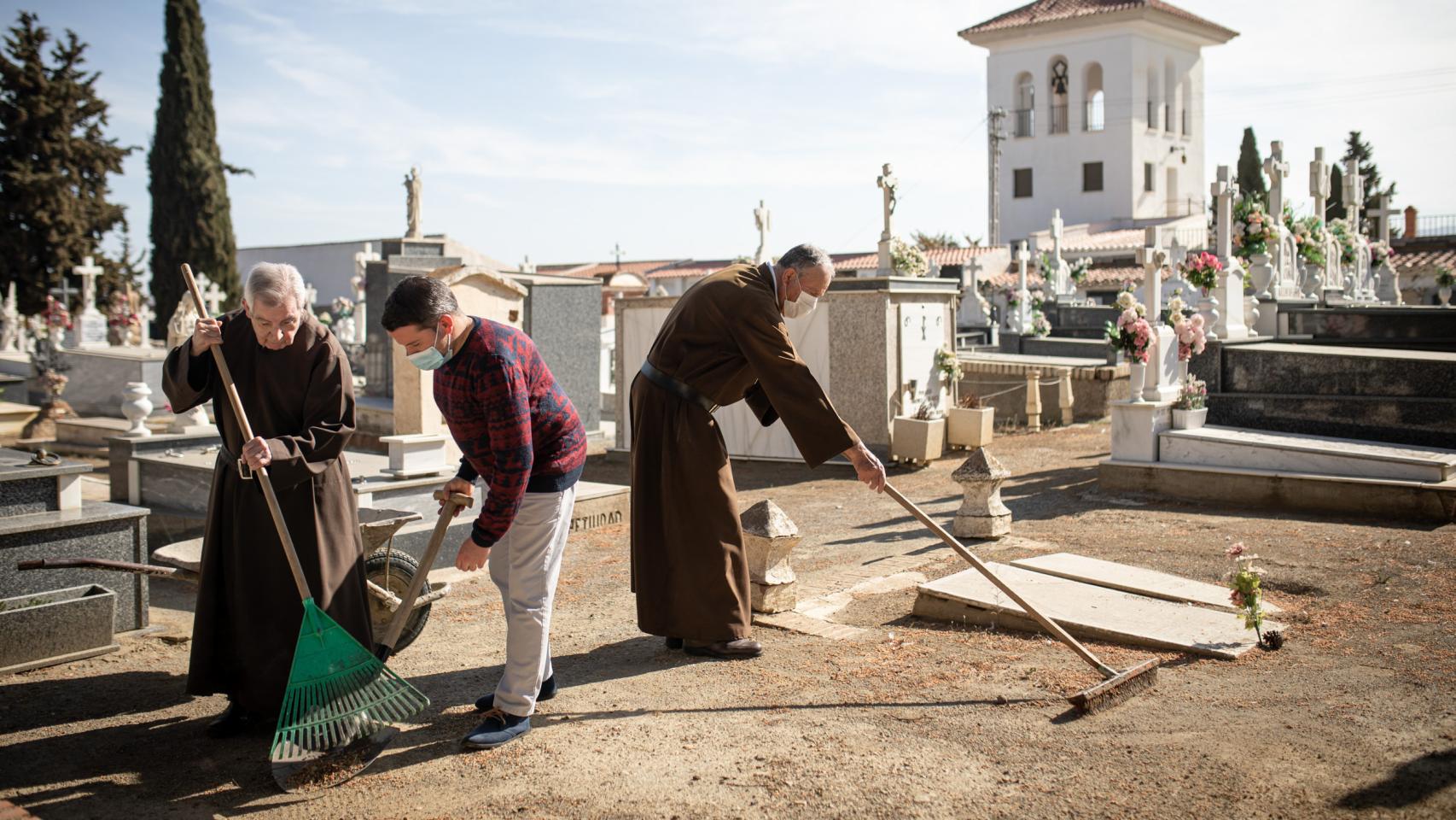 Fray Rafael, como ya no puede hacer las labores de mantenimiento del cementerio, se encarga de la alimentación de los hermanos.