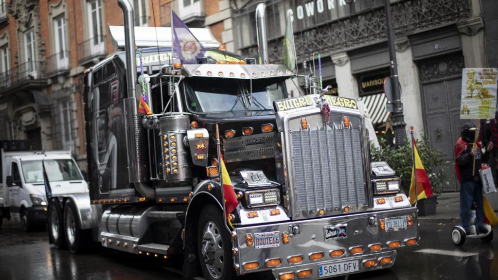 Banderas de sindicatos, banderas autonómicas pero sobre todo banderas de España. Por todos lados. Aunque lo que se ha llevado todas las atenciones ha sido un camión al más puro estilo americano bautizado como "cuervo negro".