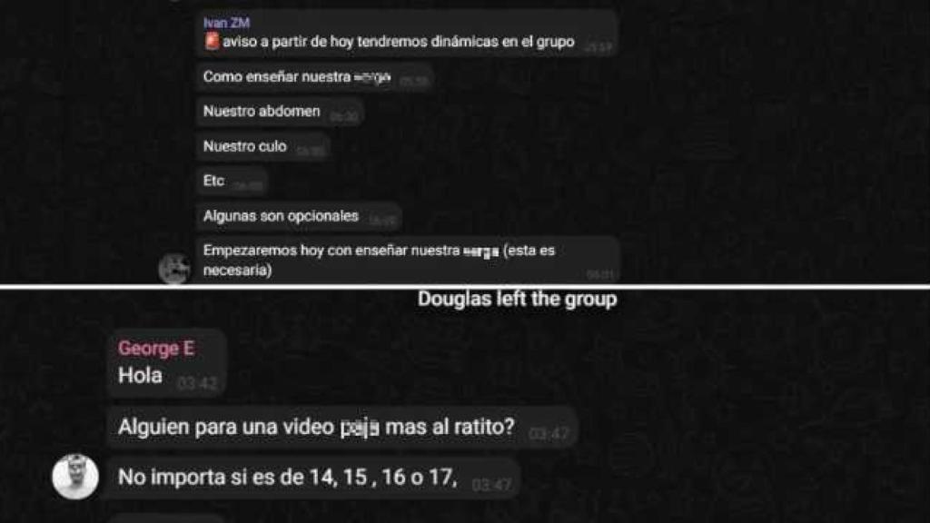 Si en algún momento decae el tráfico de vídeos y fotografías, el administrador del grupo, que se hace llamar Ivan ZM, jalea al resto: “¡Manden más aportes! ¡Tienen hasta las tres de la tarde del día de mañana para enviar algo! Si no, elimino”. Casi todas sus intervenciones se limitan a reclamar contenido. Embaucar a menores para que faciliten material de este tipo también figura en el Código Penal. Quienes lo hagan afrontan condenas de hasta dos años, nos recuerda la abogada penalista Marta Pellón, experta en delitos de pornografía infantil.