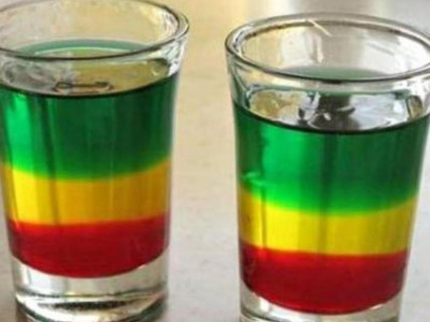 Algo así como meter un Pirulo Tropical dentro de un vaso de chupito o de tubo. Su nombre proviene de su mezcla de colores y sabores. Para obtener las tonalidades roja, ámbar y verde se le echaba cereza, fresa o granadina, naranja, licor 43, o lima y kiwi o peppermint, todo ello con una base de alcohol como ron blanco.