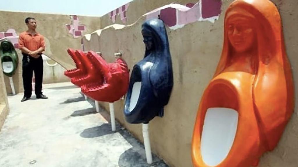 China es un país abonado a todo tipo de curiosidades, como la de estos urinarios que se asemejan a la Virgen María. Pero no acaba aquí lo anecdótico ya que forman parte del mayor complejo del mayor baño público del mundo: más de 1 000 váteres y urinarios. Con tanta cantidad estaba claro que había que salir de la monotonía; de ahí que no solo tengan la forma curiosa de Virgen, también hay cocodrilos y elefantes. Se encuentra en Chongqing, China.